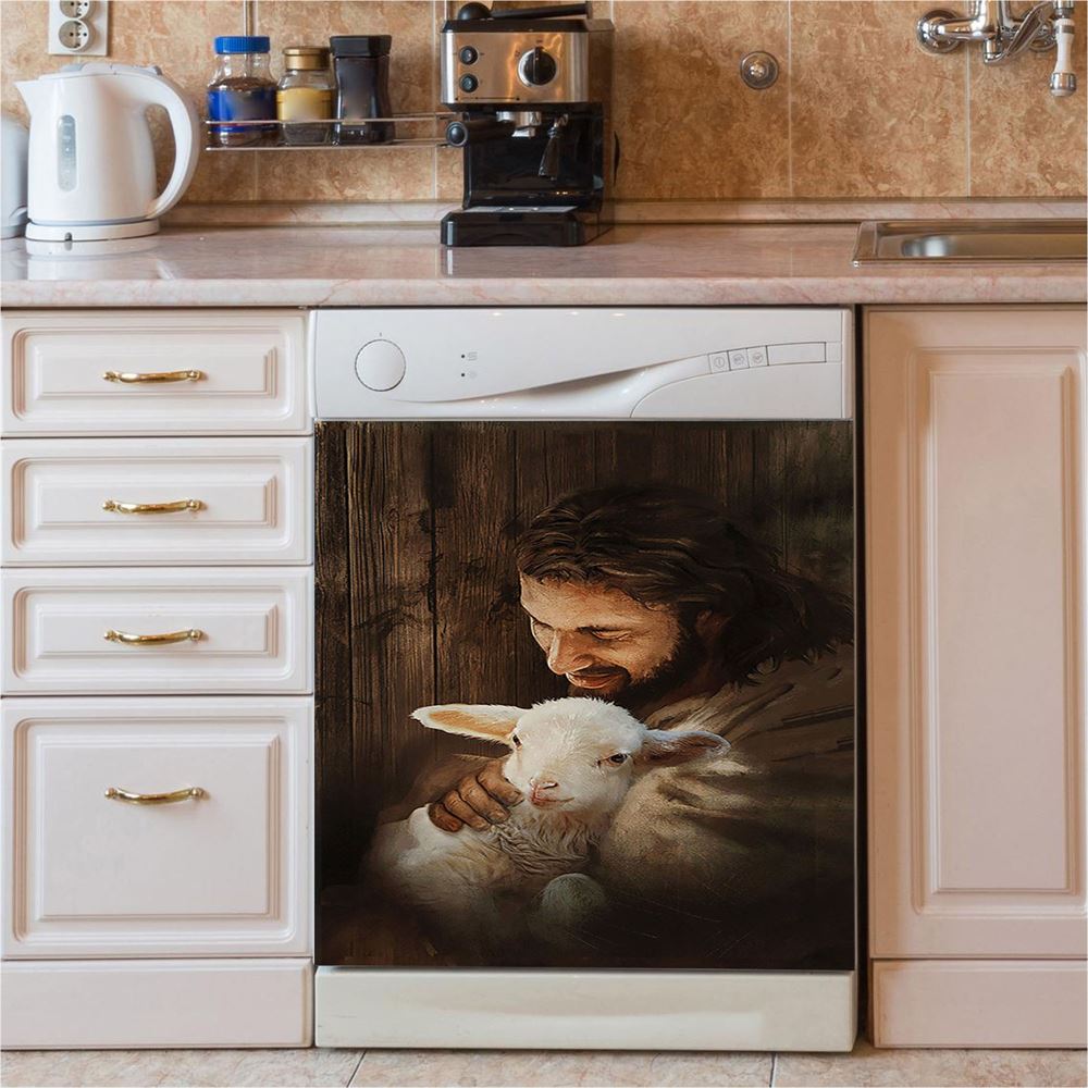 Jesus Holding Lamb Dishwasher Cover, Christian Dishwasher Stickers, Religious Kitchen Decor