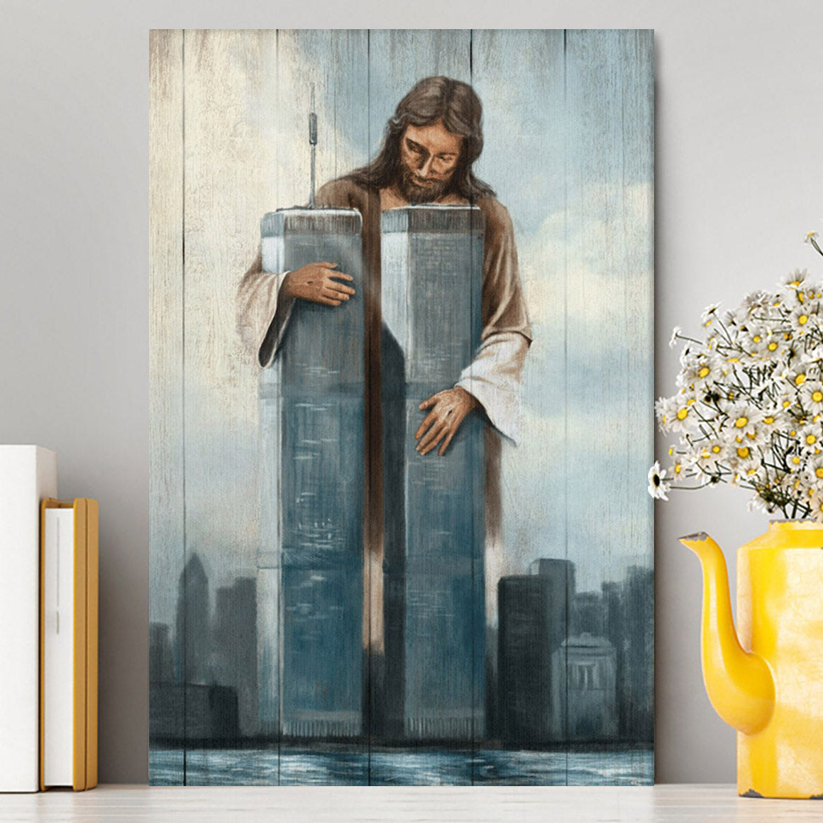 Jesus Holding The World Trade Center Building Canvas Prints - Jesus Christ Canvas Art - Christian Wall Decor
