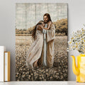 Jesus Hug Girl In Flower Field Canvas Wall Art - Christian Canvas Prints - Bible Verse Canvas Art