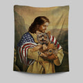 Jesus Hug Yorkshire Terrier Tapestry Art - Christian Art - Bible Verse Wall Art - Religious Home Decor