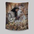 Jesus Hugging A Horse Tapestry Art - Christian Art - Bible Verse Wall Art - Religious Home Decor
