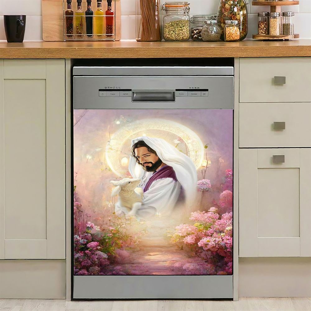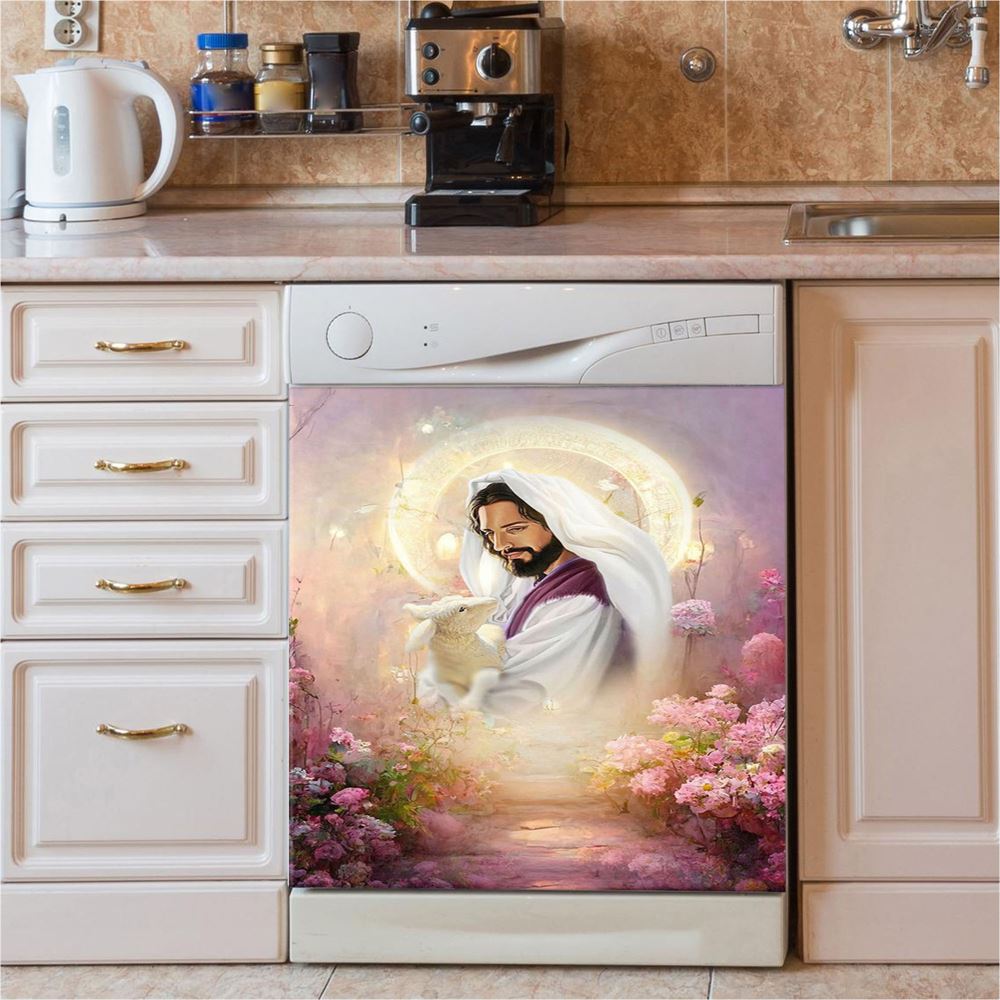 Jesus Hugging Lamb Dishwasher Cover , Jesus Dishwasher Stickers, Jesus Kitchen Decor