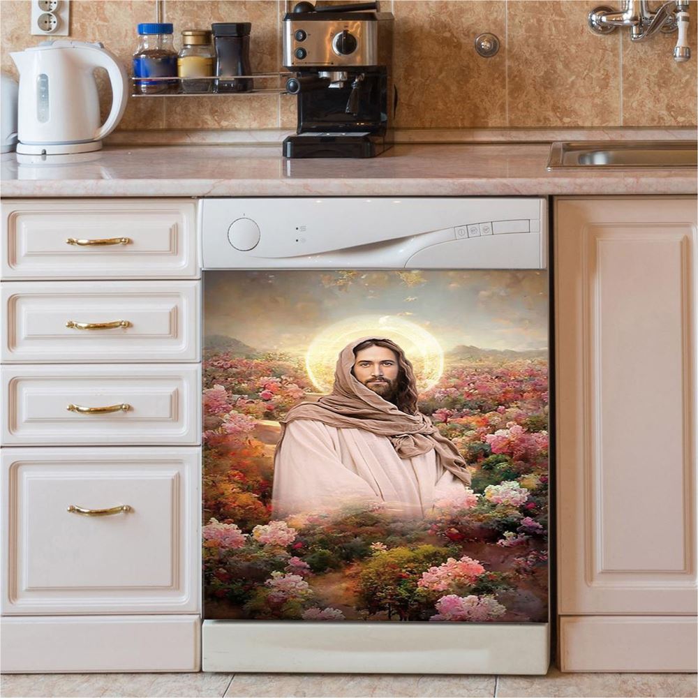 Jesus In Flowers Dishwasher Cover , Jesus Dishwasher Stickers, Jesus Kitchen Decor