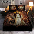 Jesus Is King Lion Of Judah Bedroom Quilt Bedding Set - Jesus Portrait Quilt Bedding Set Prints - Christian Bedroom