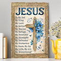 Jesus Is My God My King Blue Flower Wooden Cross White Butterfly Canvas Wall Art - Bible Verse Canvas Art - Christian Home Decor