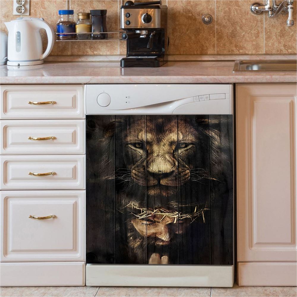 Jesus Is Praying Lion Dishwasher Cover, Lion Dishwasher Stickers, Christian Inspirational Kitchen Decor