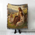 Jesus Is Teaching Children About Bible In The C1 Woven Blanket Prints - Jesus Woven Blanket Art - Christian Throw Blanket Decor