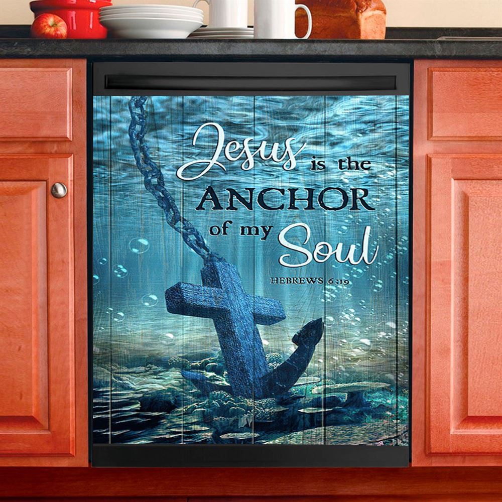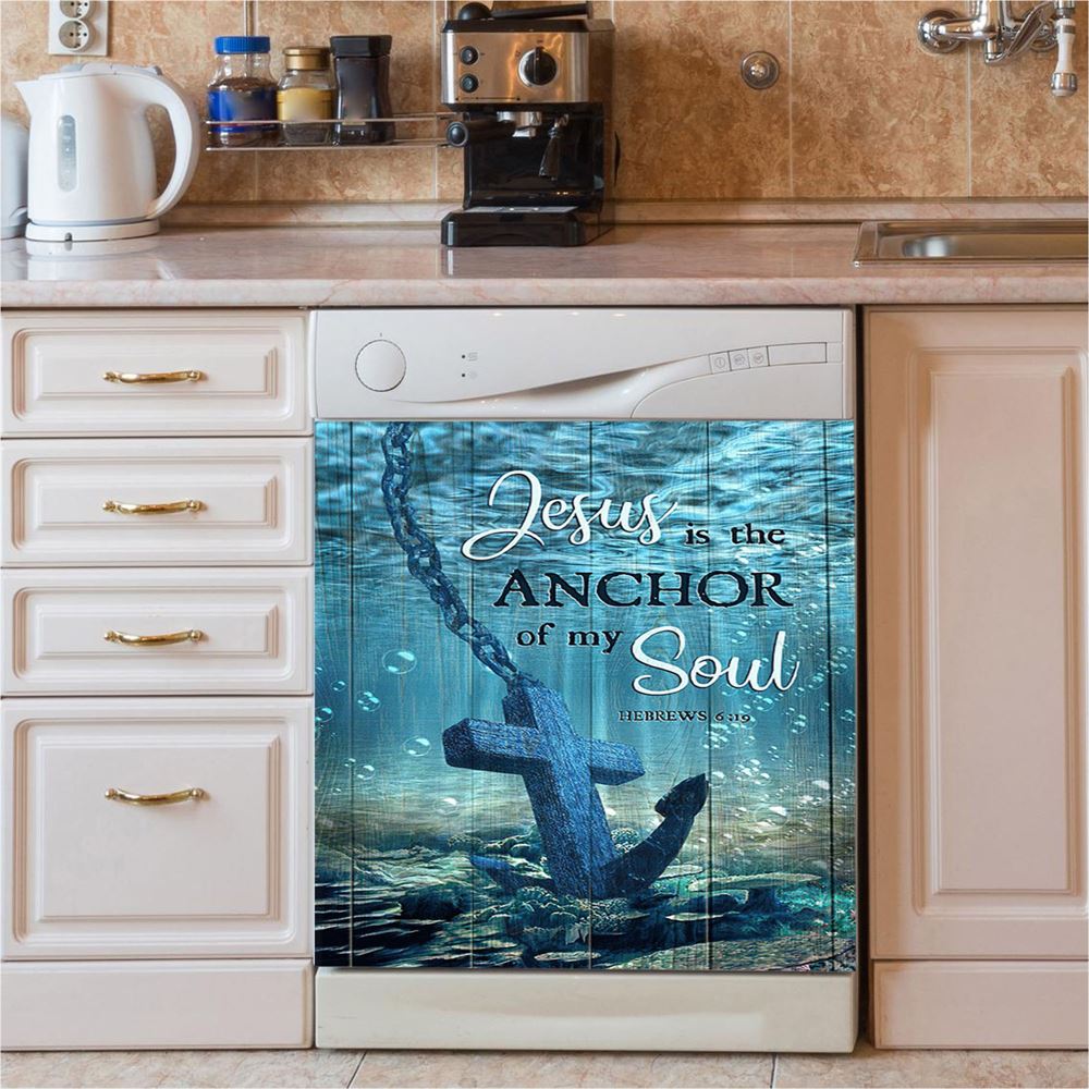 Jesus Is The Anchor Of My Soul Blue Ocean Cross Dishwasher Cover, Bible Verse Dishwasher Stickers, Inspirational Kitchen Decor