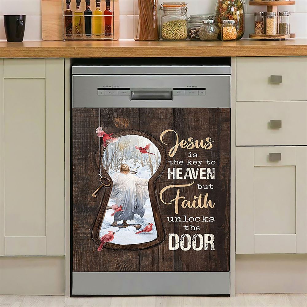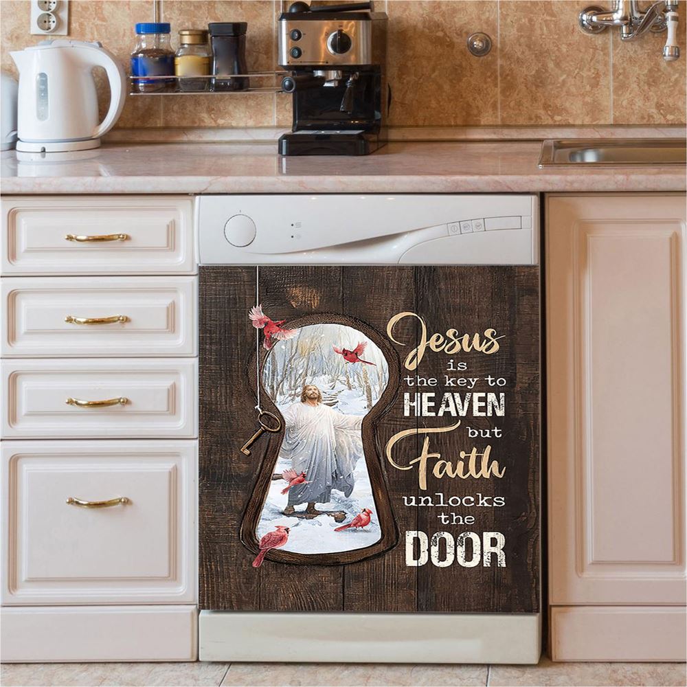 Jesus Is The Key To Heaven Dishwasher Cover, Jesus Christ Northern Cardinal Dishwasher Stickers, Christian Kitchen Decor