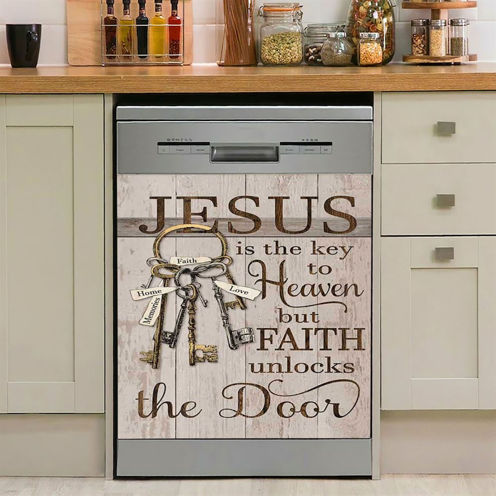 Jesus Is The Key To Heaven Dishwasher Cover, Jesus Portrait Dishwasher Stickers, Christian Kitchen Decor