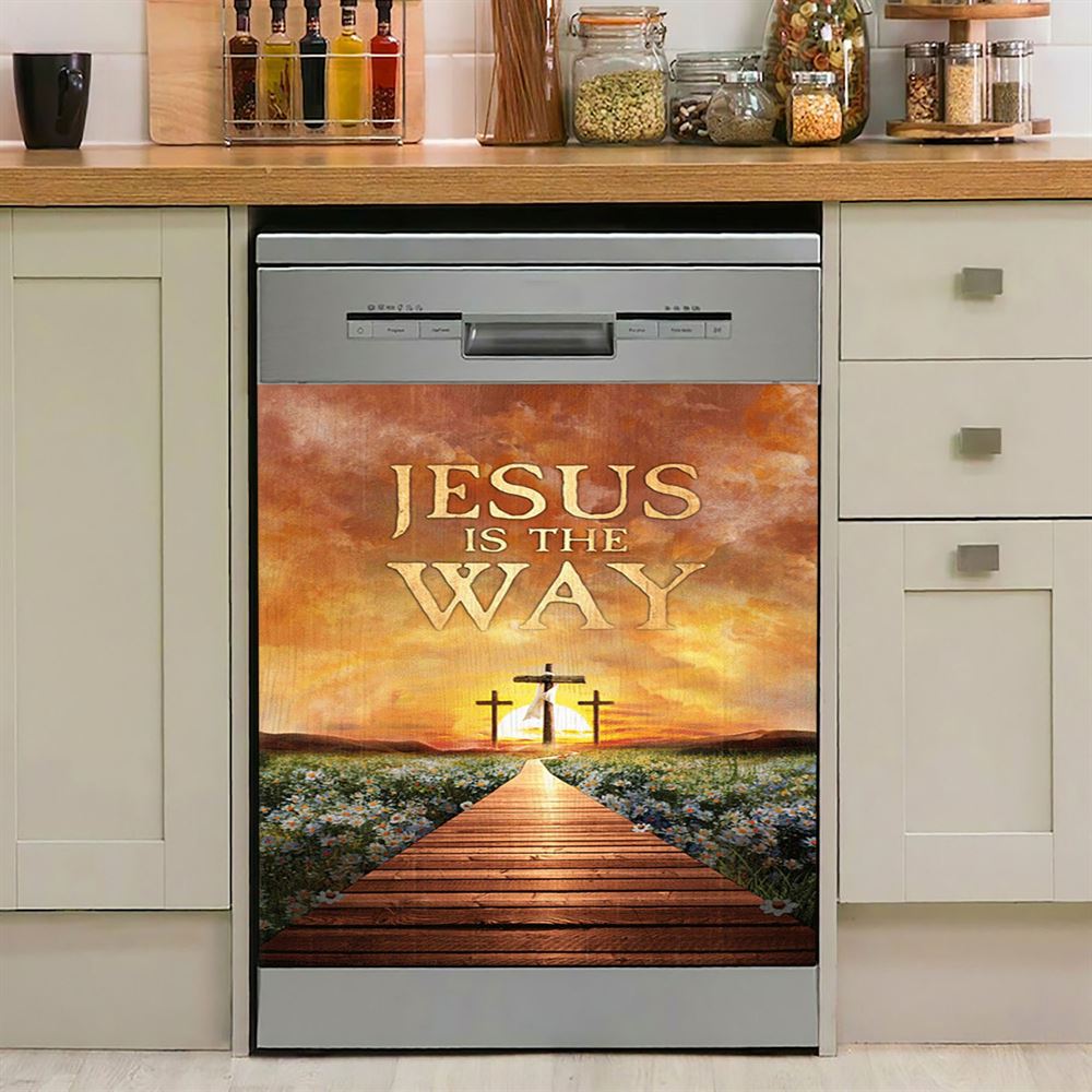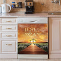 Jesus Is The Way Bridge Beautiful Sunset Cross Dishwasher Cover, Bible Verse Dishwasher Stickers, Inspirational Kitchen Decor