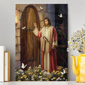 Jesus Knocks The Door Daisy Garden White Butterfly Canvas Prints - Jesus Christ Canvas Art - Christian Wall Decor