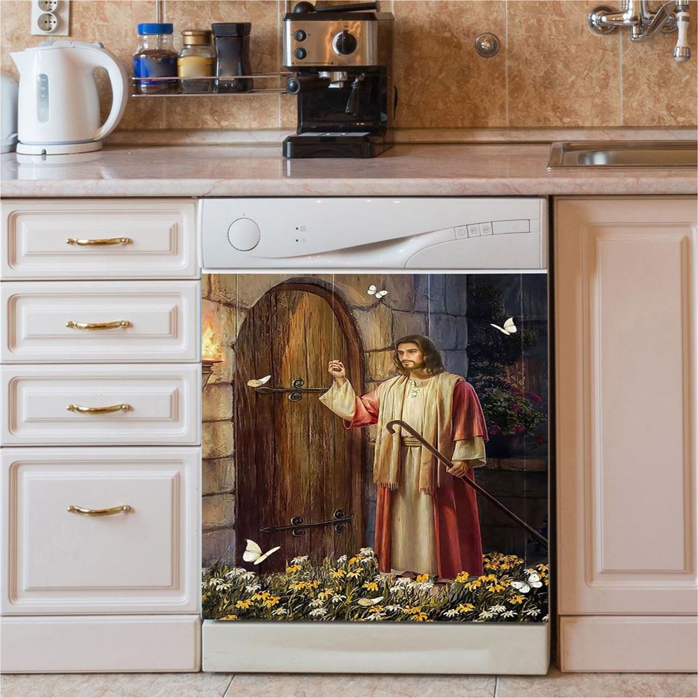 Jesus Knocks The Door Daisy Garden White Butterfly Dishwasher Cover, Jesus Christ Dishwasher Stickers, Christian Kitchen Decor