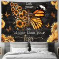 Jesus Let Your Faith Be Bigger Than Your Fear Butterfly Sunflower Tapestry, Tapestries for Living Room Bedroom