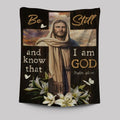 Jesus Lily Flowers Cross Be Still And Know That I Am God Tapestry