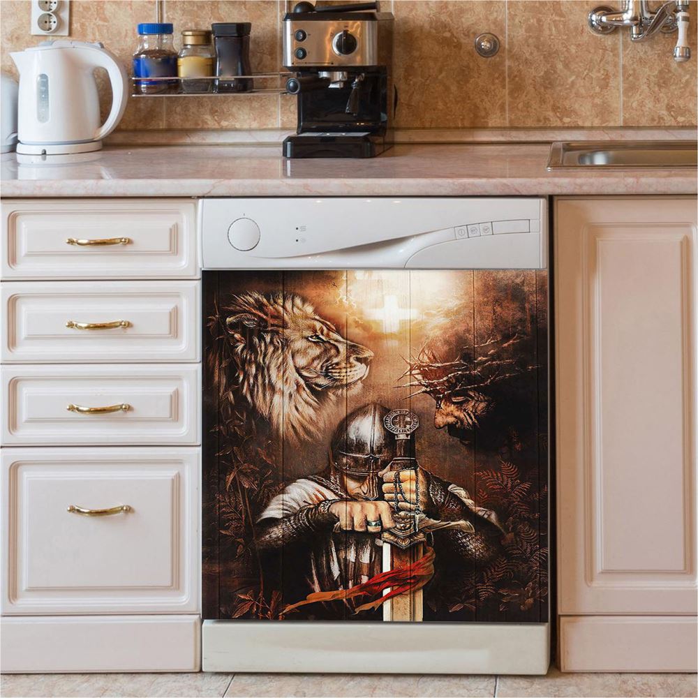 Jesus Lion And Warrior Dishwasher Cover, Christian Dishwasher Stickers, Bible Verse Kitchen Decor