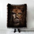 Jesus Lion Head Throw Blanket Woven Blanket - Jesus Portrait Woven Blanket Prints - Christian Throw Blanket