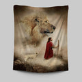 Jesus Lion King And Lamb Wall Art Tapestry - Jesus Portrait Tapestry Prints - Christian Wall Art