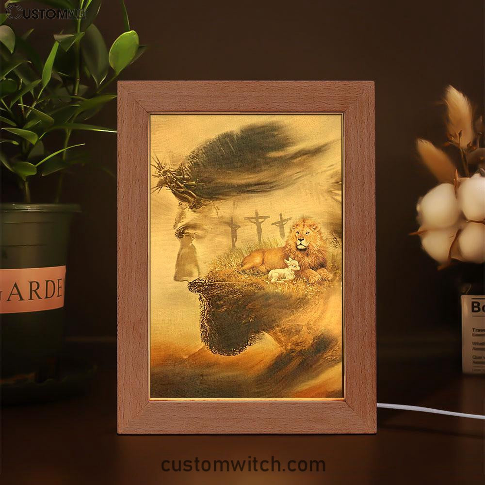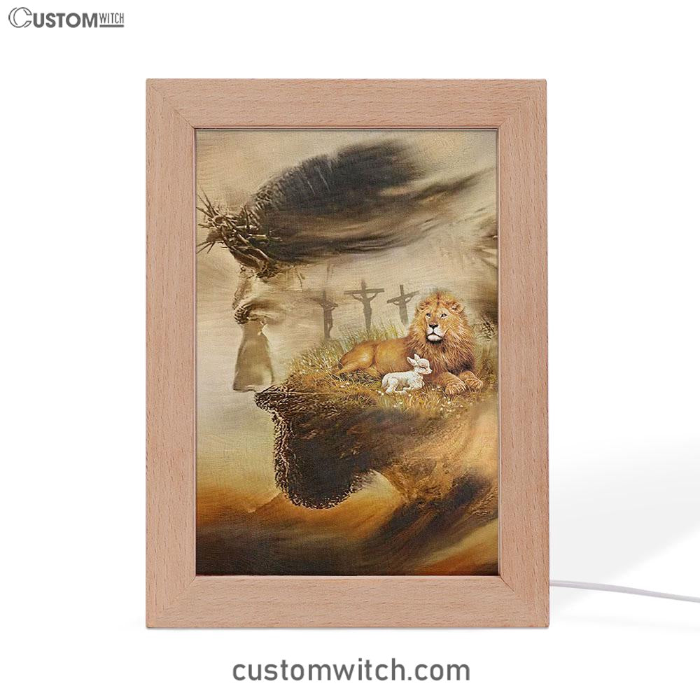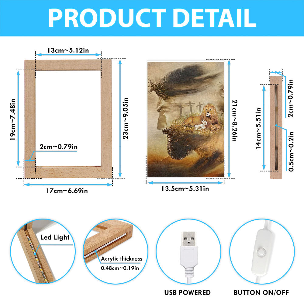 Jesus & Lion & Lamb Frame Lamp Art - Jesus Frame Lamp Pictures - Christian Night Light