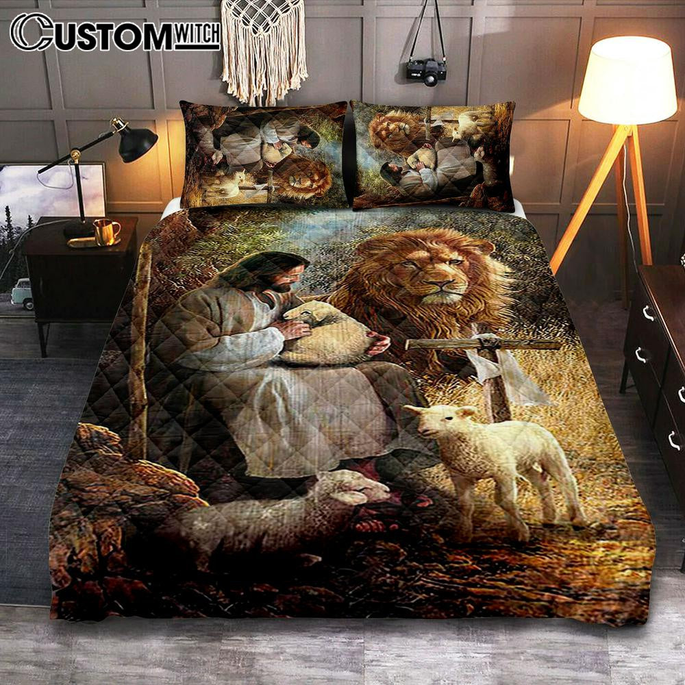 Jesus Lion Of Judah And The Lambs Quilt Bedding Set Bedroom - Bible Verse Quilt Bedding Set Art - Christian Home Decor