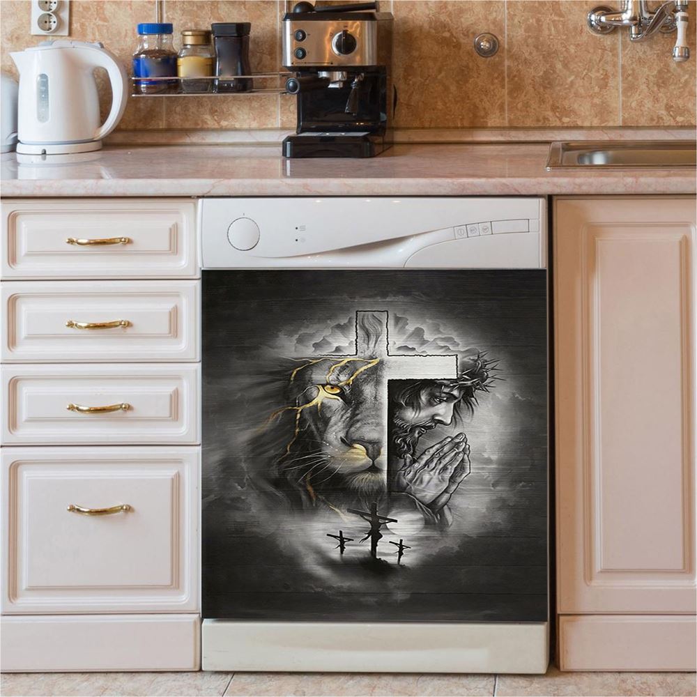 Jesus Lion Of Judah Crown Of Thorn Dishwasher Cover, Christian Dishwasher Stickers, Bible Verse Kitchen Decor