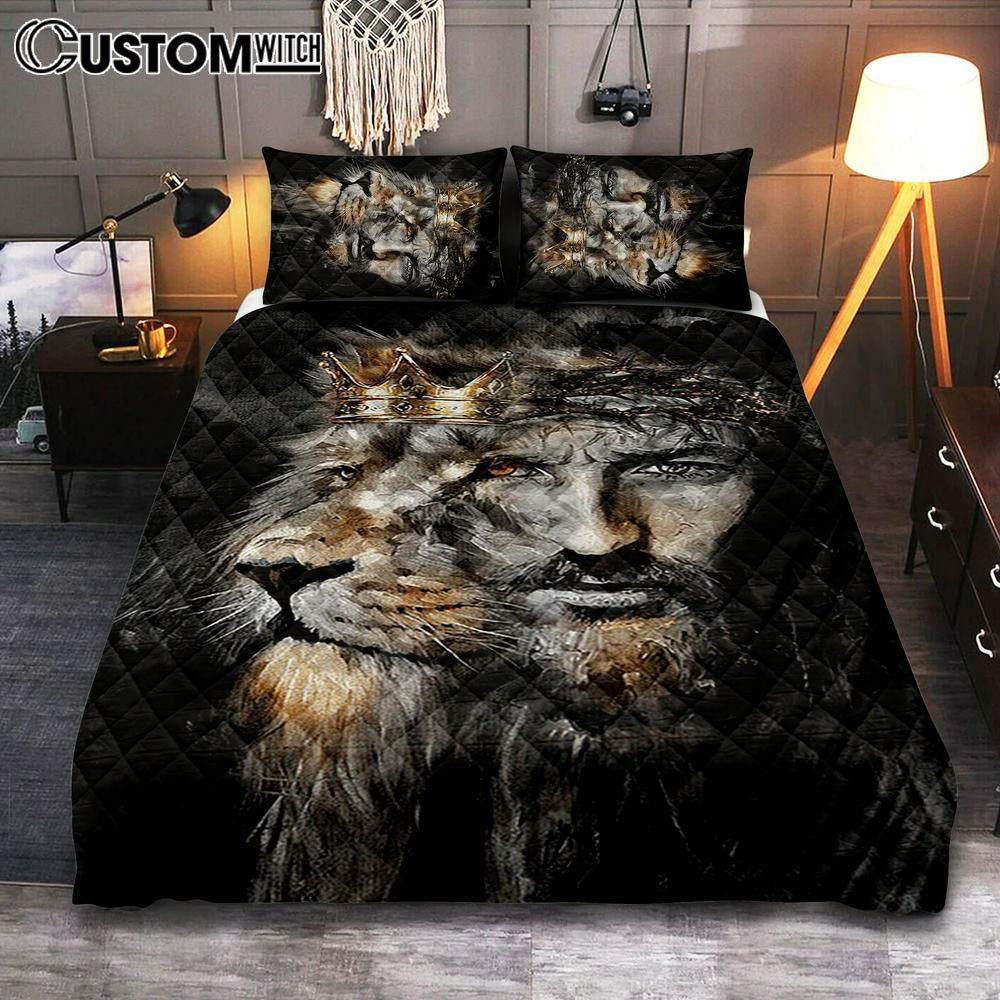 Jesus Lion Of Judah Crown Of Thorn Quilt Bedding Set Bedroom - Christian Quilt Bedding Set Prints - Bible Verse Quilt Bedding Set Art