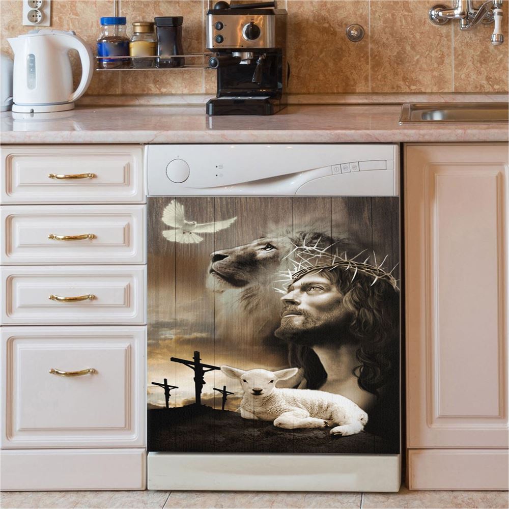Jesus Lion Sheep Cross Dove Dishwasher Cover, Jesus Christ Dishwasher Stickers, Christian Kitchen Decor