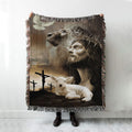 Jesus Lion Sheep Cross Dove Woven Blanket Prints - Jesus Christ Woven Blanket Art - Christian Boho Blanket