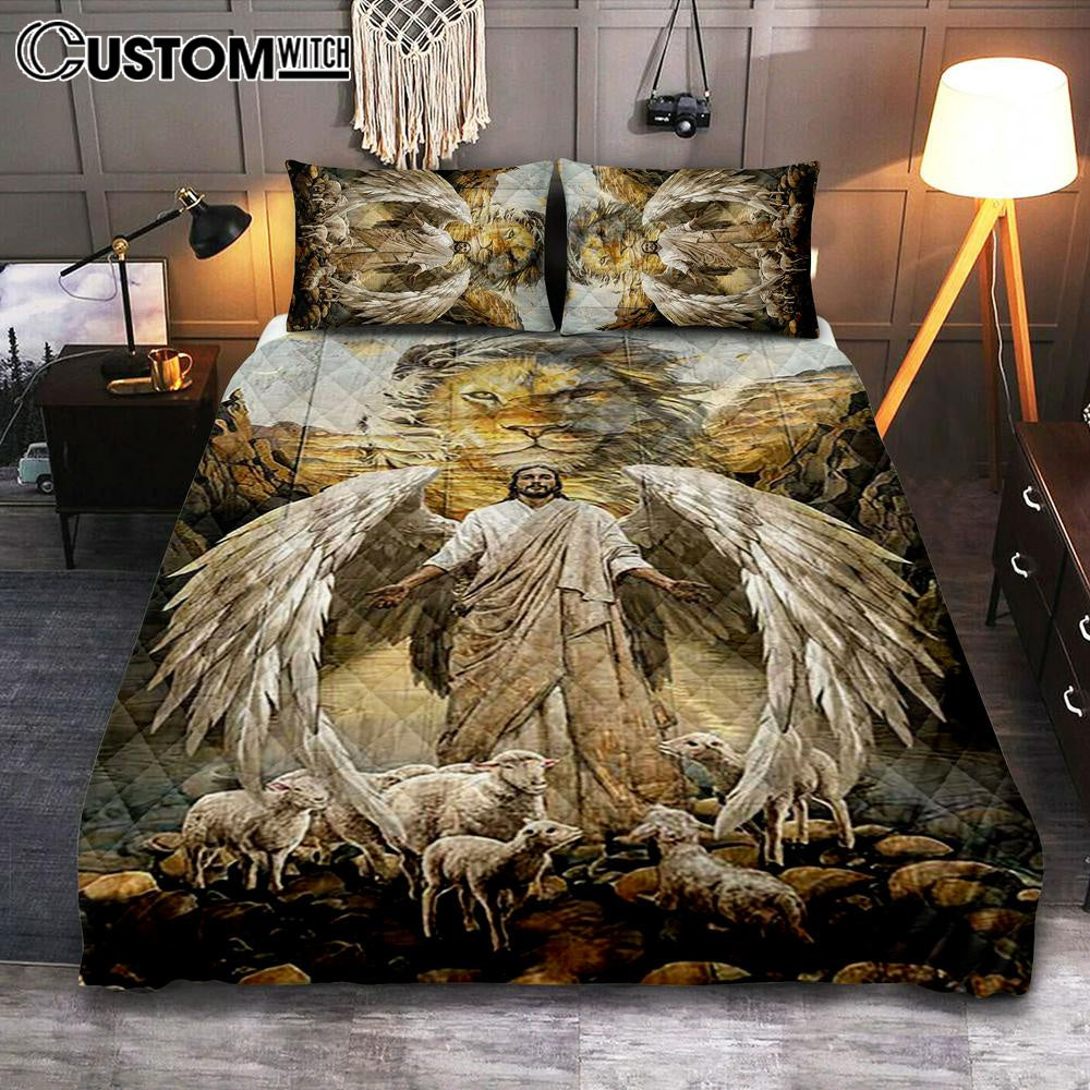 Jesus Lord Wings Lion Of Judah Lambs Of God Bedroom Quilt Bedding Set - Jesus Portrait Quilt Bedding Set Prints - Christian Bedroom
