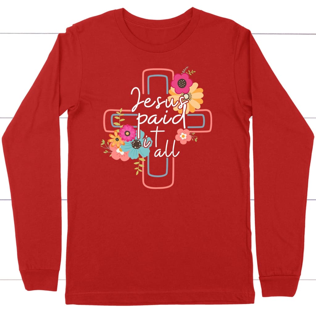 Jesus Paid It All, Flower Cross, Long Sleeve Shirt