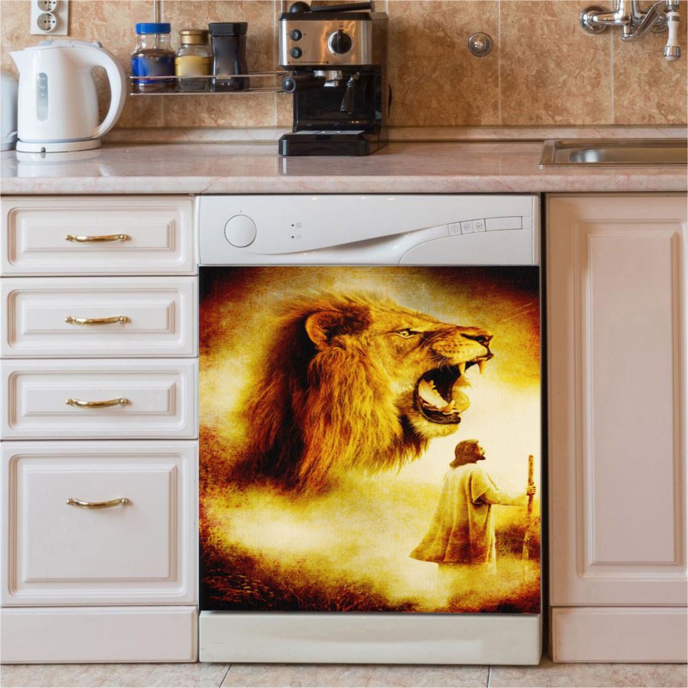 Jesus Painting Lion Dishwasher Cover, Jesus Christ Dishwasher Stickers, Christian Kitchen Decor