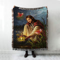 Jesus Painting Red Cardinal Advent Candles Throw Blanket Woven Blanket - Jesus Portrait Woven Blanket Prints - Christian Throw Blanket