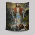 Jesus Painting Waterfall Beautiful Forest Tapestry