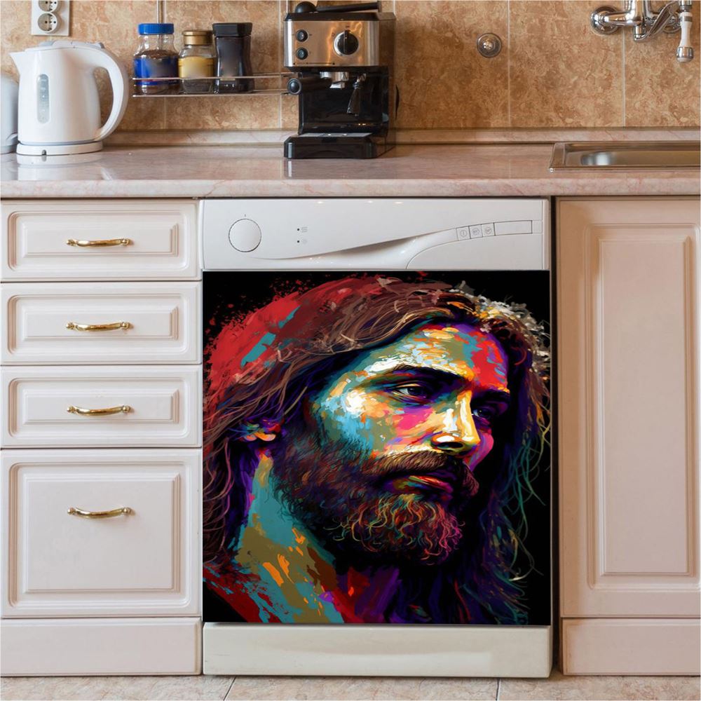 Jesus Portrait Dishwasher Cover, Jesus Dishwasher Wrap, Christian Kitchen Decoration 1