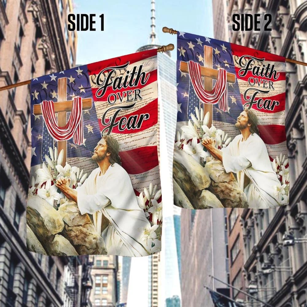 Jesus Pray Cross Faith Over Fear American House Flag, Christian Flag, Christian Flag, Scripture Flag, Garden Banner