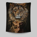 Jesus Pray Crown Of Thorn Lion Wall Art Tapestry - Jesus Portrait Tapestry Prints - Christian Wall Art