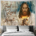 Jesus Pray Trust in the Lord with all your heart Tapestry Wall Art - Bible Verse Tapestry - Religious Tapestry Wall Hanging