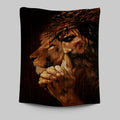 Jesus Praying And Lion Wall Art Tapestry - Jesus Portrait Tapestry Prints - Christian Wall Art
