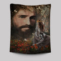 Jesus, Pretty Girl, Red Flower Garden, Flower Wreath Tapestry
