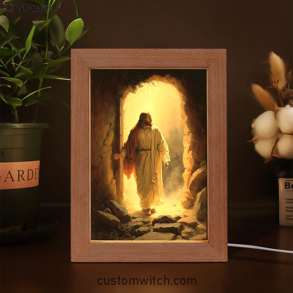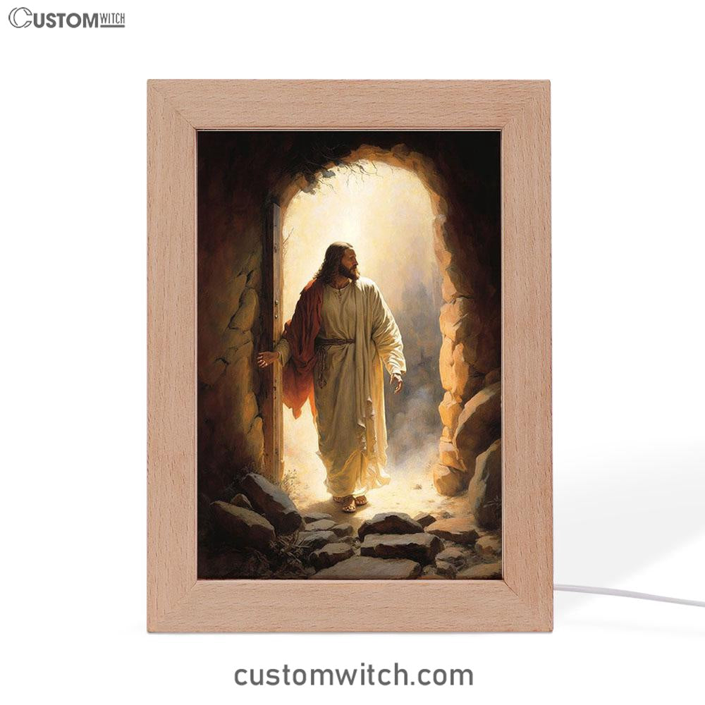 Jesus Rises From Cave Frame Lamp Prints - Religious Frame Lamp Art - Christian Decor