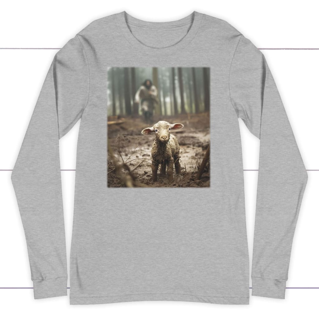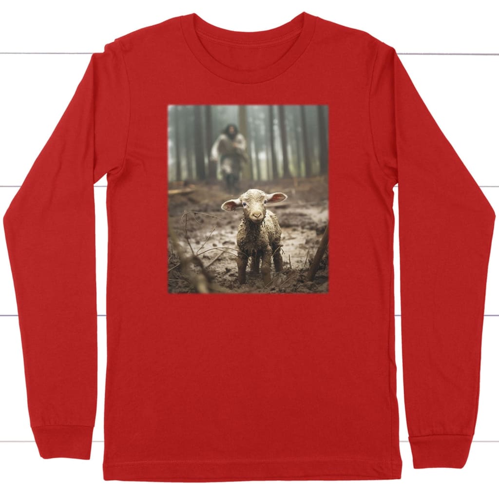 Jesus Running After a Lost Lamb, Jesus Lamb of God, Long Sleeve Shirt