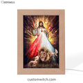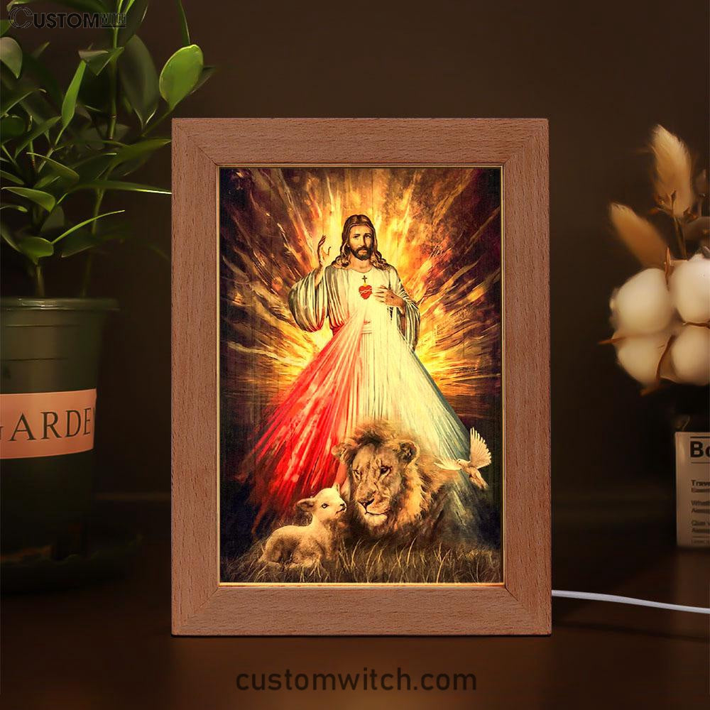 Jesus Sacred Heart Lion Lamb Frame Lamp Prints - Lion Frame Lamp Art - Christian Inspirational Frame Lamp