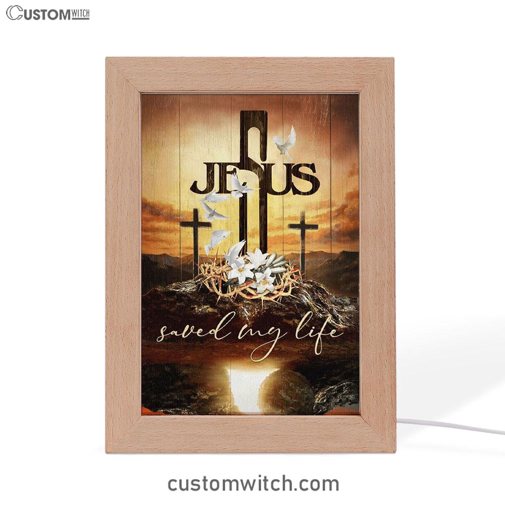 Jesus Saved My Life Frame Lamp - Cross Crown Of Thorns White Lily White Dove Frame Lamp Prints - Jesus Christ Frame Lamp Art - Christian Decor