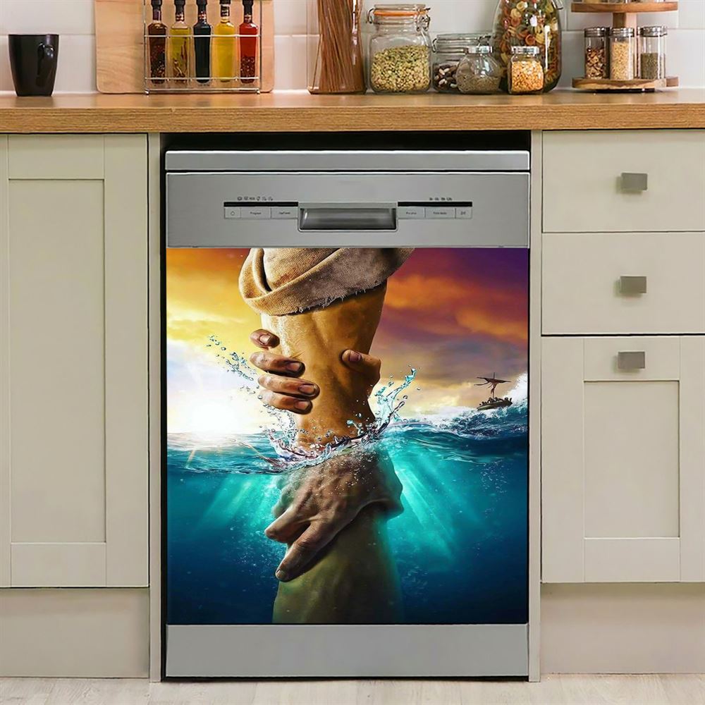 Jesus Saves Peter From Drowning Dishwasher Cover, Jesus Dishwasher Wrap, Christian Kitchen Decoration