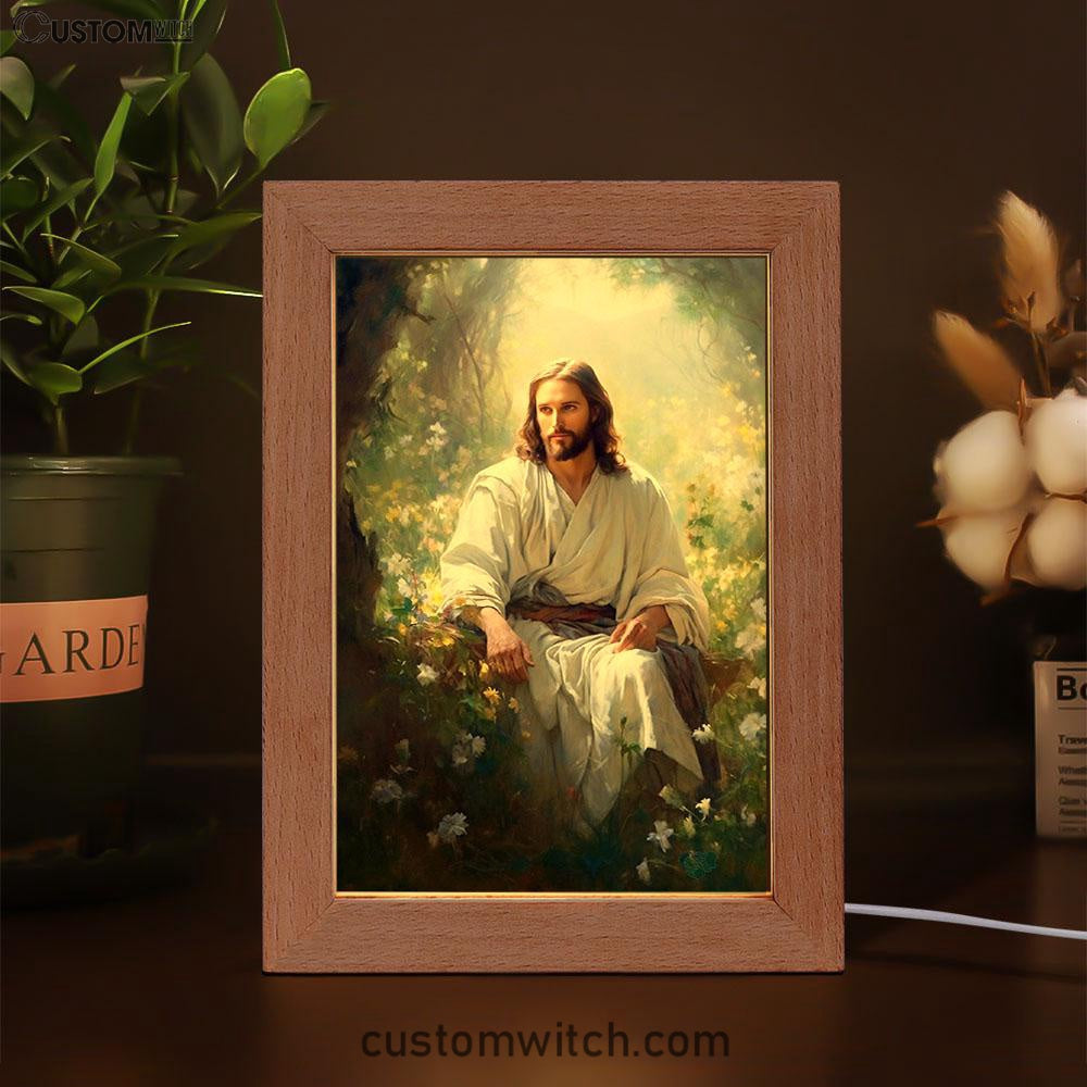 Jesus Sitting Down In The Forest Frame Lamp Prints - Jesus Frame Lamp Art - Christian Art Decor