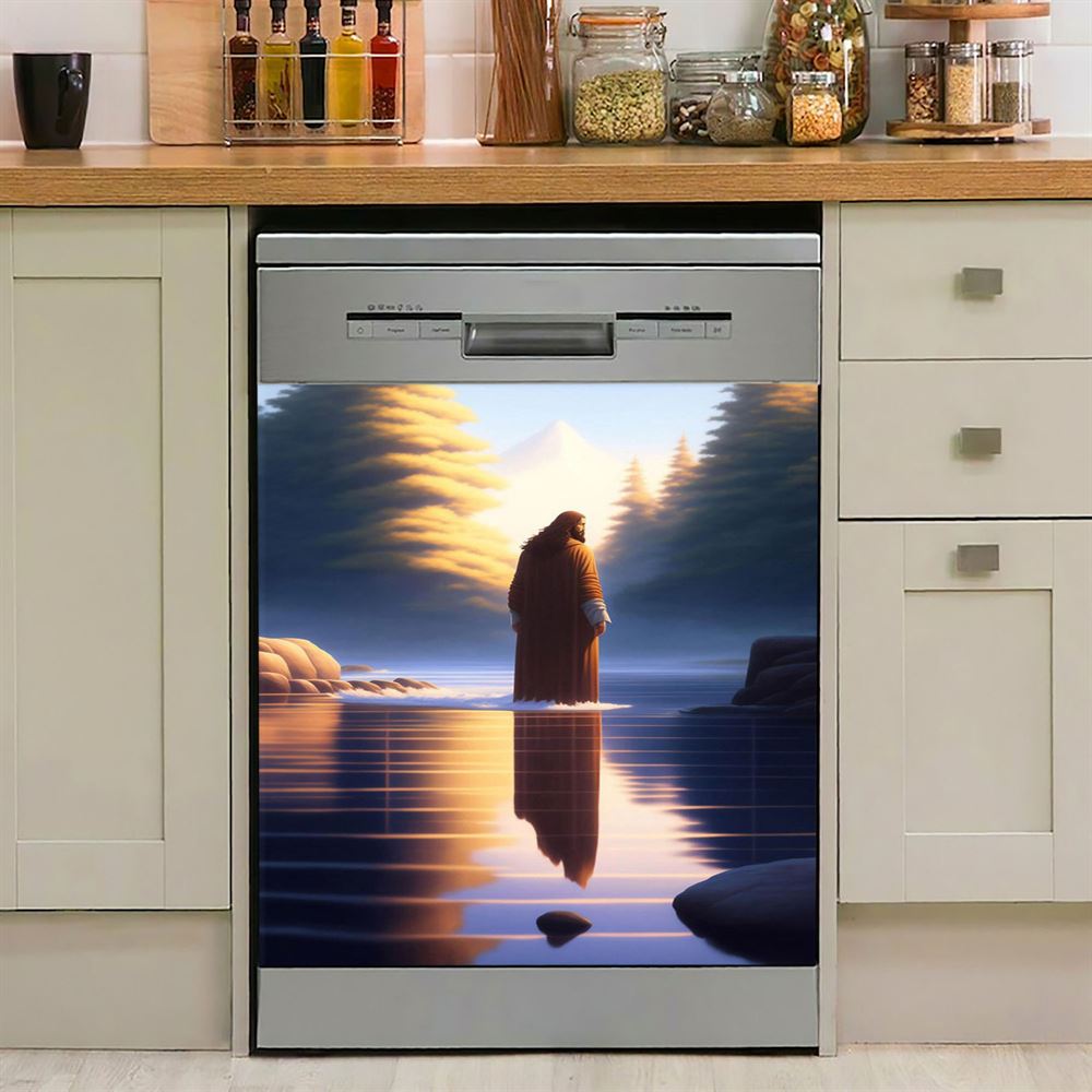 Jesus Stairway To Heaven Dishwasher Cover, Jesus Portrait Dishwasher Wrap, Christian Kitchen Decoration