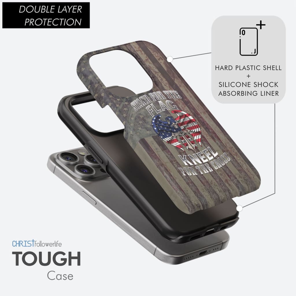 Stand for the Flag and Kneel for the Cross, American Flag Cross, Phone Case