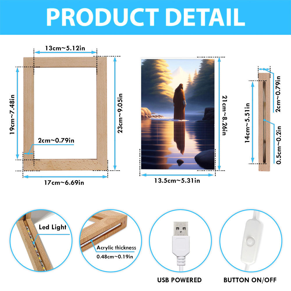 Jesus Standing On Water With Sun Shining Him Frame Lamp Prints - Religious Frame Lamp Art - Christian Decor