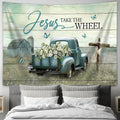Jesus Take The Wheel Daisy Field Ladybug Car Tapestry Wall Art - Bible Verse Tapestry - Religious Tapestry Wall Hanging