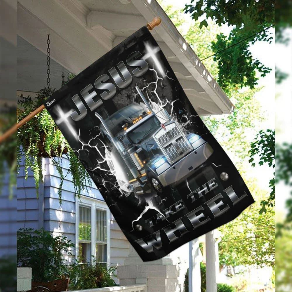 Jesus Take The Wheel Trucker House Flag, Christian Flag, Christian Flag, Scripture Flag, Garden Banner